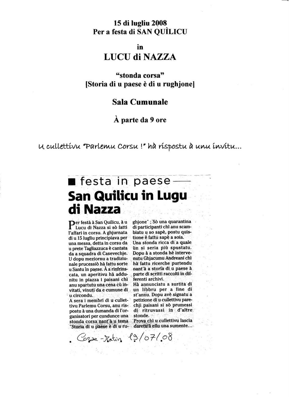 "corse-matin", u 5 è u 6 di ghjunghju 2008.